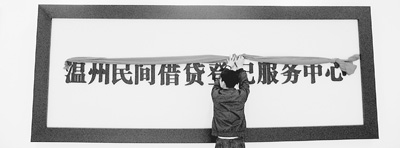 温州东明路,东明锦园一处高楼下。记者走进大厅,见红绸遮墙,掀开正是一排“老宋体”:“温州民间借贷登记服务中心”。