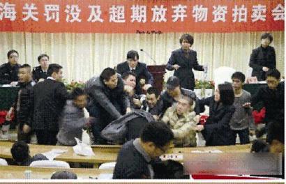 ——拍卖会现场,几位竞买者为了竞争尿不湿,大打出手,拍卖会被迫暂停。