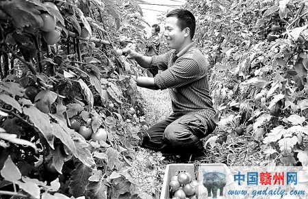 曾聪华是定南县天九镇天花村人。2003年,他从江西农业大学园艺专业毕业后,曾先后辗转于上海、广东等地的园艺公司务工,积累了一定的资金和园艺管理技术。2010年冬,他毅然放弃了园艺公司的高薪聘请,返乡开办了一个果蔬基地。为做强自己的果蔬品牌,曾聪华忙里偷闲,不但积极参加政府组织的农技培训,而且远赴江西新余、广东惠州等地的有机蔬菜基地参观学习,引进了西葫芦、龙须豆等10多种果蔬品种,并仿效采用机械化生产和滴灌等管理技术。由于肯吃苦、勤学习、善钻研,曾聪华的果蔬基地目前已渐成规模,种植面积达40多亩,2012年实现年纯收入18万多元。在曾聪华的带动下,周边村落的20多户农民开辟荒土种植大棚蔬菜。