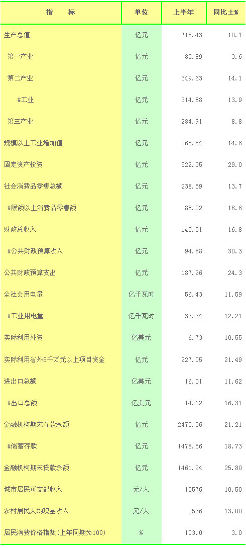 赣州市2013年上半年主要经济指标