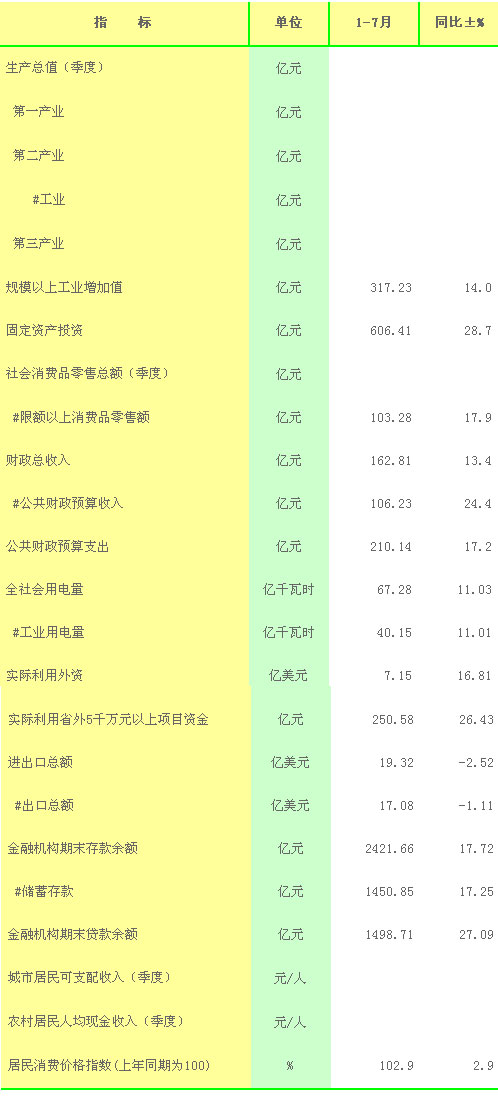 赣州市2013年1-7月主要经济指标