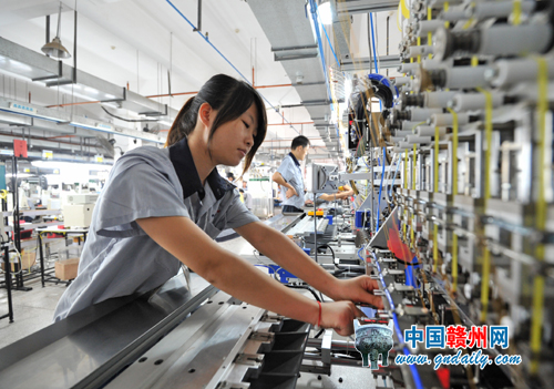 9月8日,工人在伟创力电源(赣州)有限公司生产车间内忙碌。今年以来,赣州出口加工区积极利用赣南苏区振兴发展的政策红利,引进了威赛光电、德润工贸等保税加工企业,逐步实现从单一的加工制造向“保税加工和保税物流”转变。据统计,今年1月至7月,赣州出口加工区进出口总值为1.81亿美元。钟宏波 记者郭芷汇 摄