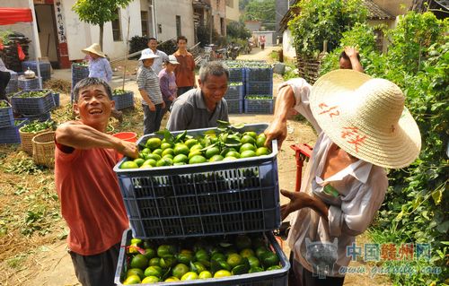 今年10月中旬是我市脐橙开采的时候,近日,记者来到上犹县,该县东山镇南塘村脐橙专业合作社社员刘路平高兴地对记者说:“过不了多久又要分红!自从成立了专业合作社,县农粮局的技术人员手把手地教技术,销售上由合作社包干,我只要专心把脐橙种好,到了年终只管分红。”