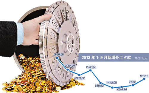 昨日,央行发布的数据显示,截至9月末我国金融机构外汇占款余额达275179.54亿元,较8月末增加1263.62亿元,9月为外汇占款连续第二个月增加,扭转了6、7月份连续两个月减少的局面,表明资本加速流入中国。专家表示,四季度新增外汇占款将继续好转,此外,美国量化宽松政策短期内很难退出,也降低了资金流出国内的压力,预计四季度的流动性将维持较平稳的态势。