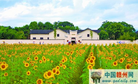 近日,一批来自广东的游客在瑞金市沙洲坝红井景区游玩。该景区争相绽放的向日葵,吸引全国各地游客纷至沓来。近年来,瑞金市通过在景区增设新景点、丰富景区内容等方式,进一步提升景区内涵,增强吸引力。郭经纬 见习记者潘庆坤 摄