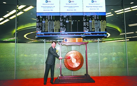 昨日,重庆银行在香港联交所挂牌上市,重庆银行董事长甘为民出席敲锣仪式。