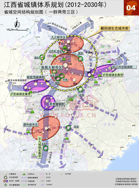 规划提出在全省范围内构筑 “一群两带三区”的省域城镇空间发展总体结构。“三区”,即分别为南昌大都市区、九江都市区和赣州都市区。赣州都市区建设定位为我国中部地区的开放高地和赣南等原中央苏区振兴发展的核心增长极、赣江源头地区的生态文明建设示范区和江西省统筹城乡发展示范区。