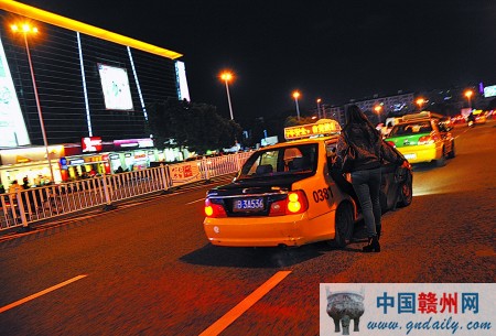 12月17日晚上9时30分左右,记者在赣州市南门文化广场附近发现有一些出租车为了抢客,