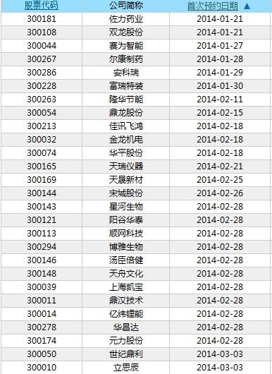 深交所网站消息,深交所网站31日发布创业板上市公司2013年年报预约披露情况。佐力药业和双龙股份夺得头筹,预约1月21日披露年报,赛为智能紧随其后,1月27日公布。