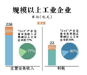 ——2013年,全区80户规模以上工业企业实现主营业务收入238亿元,同比增长23%,利税23亿元,同比增长20%。其中,“2+3”产业主营业务收入、利税分别占规模以上工业企业的77%、80%。