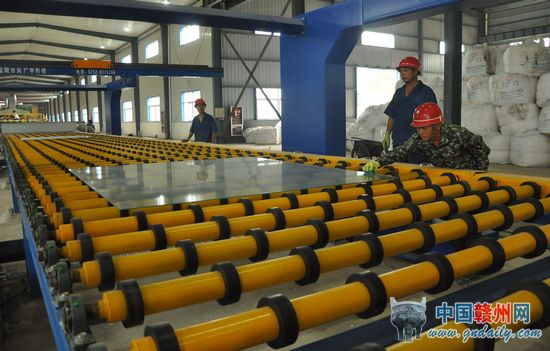 定南县赣悦(江西)光伏玻璃有限公司的工人在生产光伏玻璃。据悉,该项目总投资6亿元,主要生产高附加值的超白超薄光伏玻璃,填补了我省光伏玻璃制造业的空白。(资料图片)