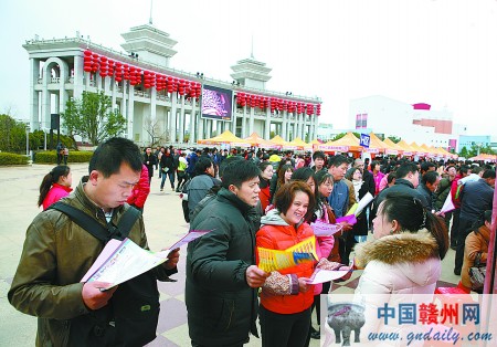 2月7日,为期两天的2014年赣州市春季就业招聘大会在赣州市中心城区黄金广场拉开帷幕。