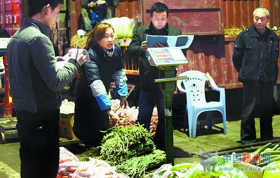 2月18日晚7时许,章贡区沙河五龙蔬菜批发市场里一片繁忙景象,菜贩们正在这里紧张地做着蔬菜批发生意。据该市场的管理人员透露,虽然十多天来持续低温阴雨天气,但蔬菜供应仍然较为平稳。 记者张庆云 摄