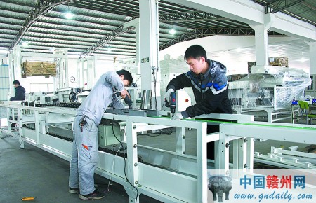 近日,信丰绿萌农业发展有限公司的员工在全自动果蔬分选机生产车间作业。据悉,该公司是一家集果蔬采后处理设备制造、脐橙采后服务与贸易、果品种植于一体的国家高新技术企业、省农业龙头企业。近年来,信丰县把培育农业龙头企业作为现代农业发展的“引擎”,大力进行农业招商,积极引进、扶强做大以脐橙为主的农产品深加工企业。目前,该县年销售收入500万元以上的农业龙头企业达74家。特约记者李健 摄