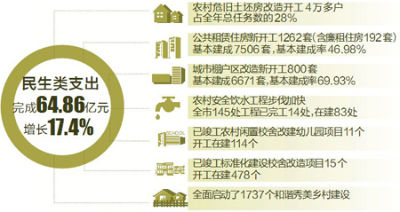今年以来,我市民生工程继续扎实推进,各项社会事业和人民生活持续向好,全市用于教育、社保、医疗、文化体育与传媒、住房保障等民生类支出完成64.86亿元,增长17.4%,占支出总量比重超过六成。