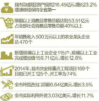 2014年,我市共安排重点工程项目169个,目前已开工125个,开工率为74%。110千伏输变电工程、220千伏输变电工程、南昌至宁都高速公路(赣州段)、中石化樟树至赣州石油管道工程等项目加速推进;黄金大桥、武陵大侨、沙石大桥建设进展顺利,预计年底竣工通车;蓉江三路、四路及和谐大道年底可建成通车……在重点工程项目的带动下,我市经济建设走上一条有市场、有后劲、高效益、低耗能的可持续发展之路。