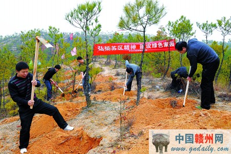 图为兴国县干部在该县社富乡东韶村种植阔叶树。(资料图片) |