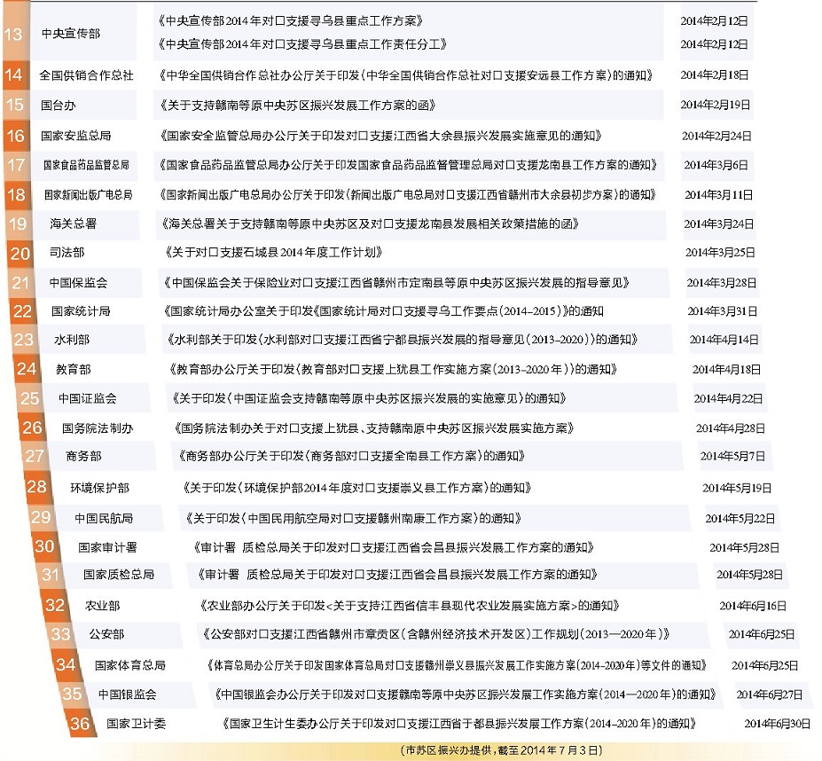 中央国家机关及有关单位出台对口支援赣州文件汇总表