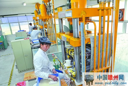 工人在赣州晶环稀土新材料有限公司压制车间内忙碌。近年来,该公司投资近亿元用于扩大生产规模和技术研发,成功获得了6项实用新型专利,并被认定为省级高新技术企业。