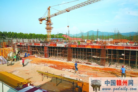 记者拍摄建设中的赣州综合商贸物流园一角。该项目总建筑面积为360万平方米,总投资额100亿元,是我市打造的集商贸、物流、仓储、产业交流等功能于一体的现代化区域商贸物流中心。