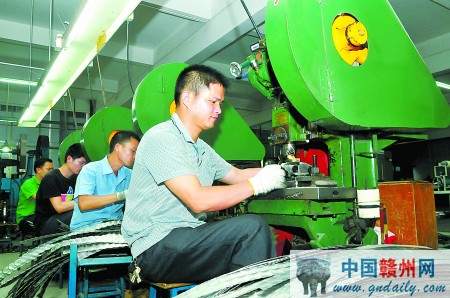 工人在大余县东宏旅游工艺品有限公司车间赶制出口金属标牌。该公司是2013年8月第十一届赣台经贸文化合作交流会签约项目,项目总投资3.2亿元。