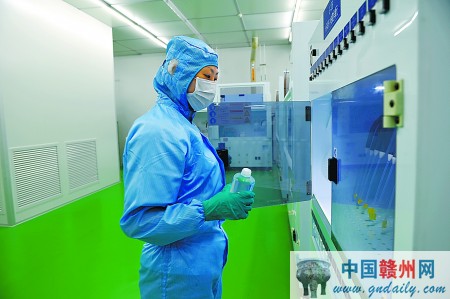 技术人员在赣州开发区的赣州华星氟材料有限公司实验室进行产品取样检测。据了解,该公司是央企中国华星氟化学投资集团有限公司在赣州投资建设的项目。
