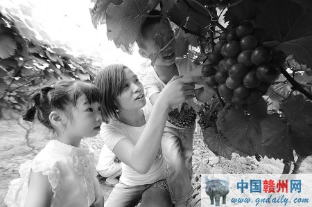 近日,市民在章贡区一家农庄采摘葡萄。近年来,章贡区城郊生态农业发展迅速,采摘游成市民旅游新时尚。