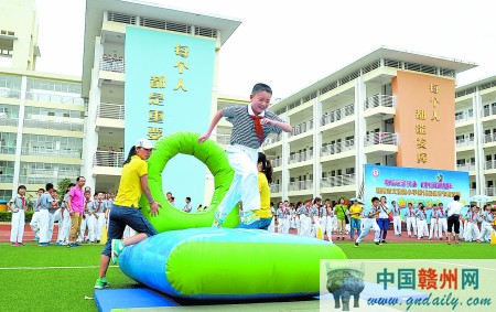 我市坚持德育为先,扎实开展校园文化建设和中小学素质教育。图为赣州市文清路小学的学生在参加障碍接力比赛。