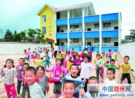 2012年,市政府出台政策大力推动公办幼儿园建设和管理工作,要求每个乡(镇)兴办1所公办中心幼儿园。图为在市教育局驻村“三送”工作队的帮扶下,会昌县周田镇下营村新建的全市第一所村级公办幼儿园。