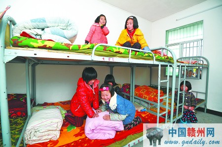 我市坚持教育优先,筹集7亿多元资金,全面改善农村村小及教学点的办学条件,为学生配备标准的宿舍、食堂、洗浴、厕所等生活设施。图为宁都县大沽乡南林小学的孩子们睡上了结实安全的铁架子床。(资料图片)