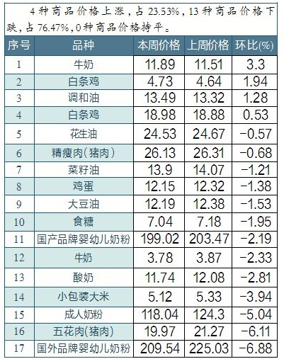 赣州市生活必需品每周价格涨跌幅排序