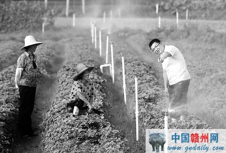 章贡区委农工部驻沙河镇罗坑村“三送”干部帮助农户申请农业开发项目资金10万元,建设20亩蔬菜喷灌工程,有效解决了农田灌溉难题。(资料图片) 记者吴悦 摄