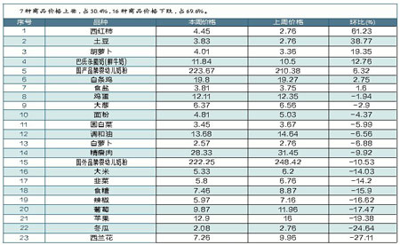 赣州市生活必需品每周价格涨跌幅排序