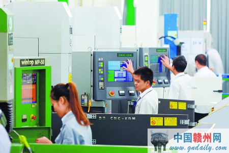 10月15日,赣州嘉意通汽车部品有限公司的工人正在操作数控机床加工汽车配电盘模具。该企业总投资3.2亿元,主要生产汽车零配件、配电盘。在章贡区的有力推进下,该企业一期工程实现当年签约、当年开工、当年投产,成为中汽零(赣州)产业基地项目签约单位中首个实现开工投产的先进制造业企业。