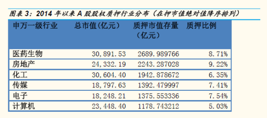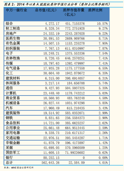 我们认为,落实到行业特征来看,行业分布的情况体现了民营资本占比较大的行业(如轻工制造)和现金流依赖型行业(如房地产)对股权质押的需求较大。
