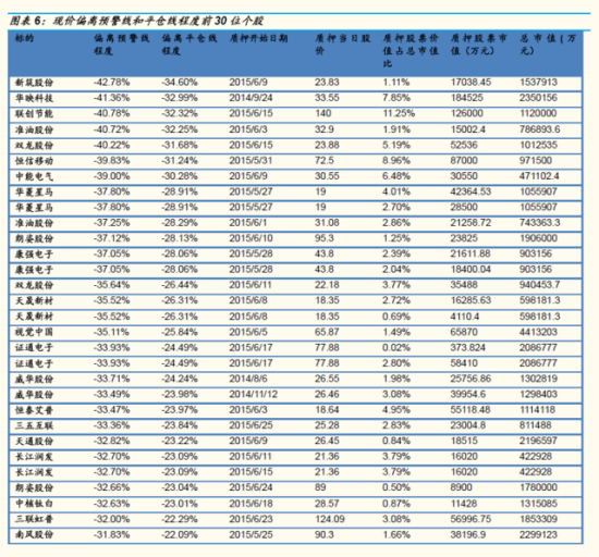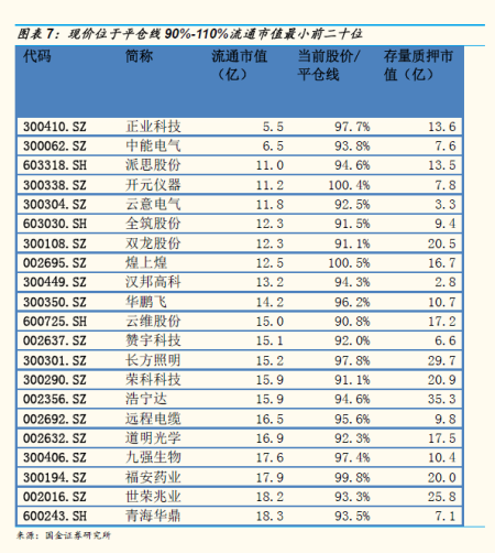 从个股角度看,我们按照现价计算了现价平仓线较大的个股和在现价条件下位于平仓线90%—110%的个股,供投资者参考,但是需要提醒投资者的是,这部分个股也需要仔细甄别其财务指标和资产质量,以此来判定大股东的自救意愿。