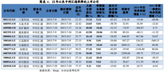 兴业证券称,6月下旬至7月的股灾引发多数上市公司股价剧烈回调,市值严重缩水,嗅觉灵敏的产业资本把握市场下调的良机,低位抢筹。