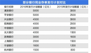 相关数据也在佐证前述观点。根据中国货币网披露,目前已有兴业银行、浦发银行等29家银行公布2016年同业存单发行计划,累计规模达3.78万亿元。其中,浦发银行、平安银行、兴业银行和招商银行2016年度同业存单计划发行额度分别为5000亿元、5000亿元、4500亿元、4000亿元,分别相当于2015年的2倍、1.67倍、1.5倍、2倍。