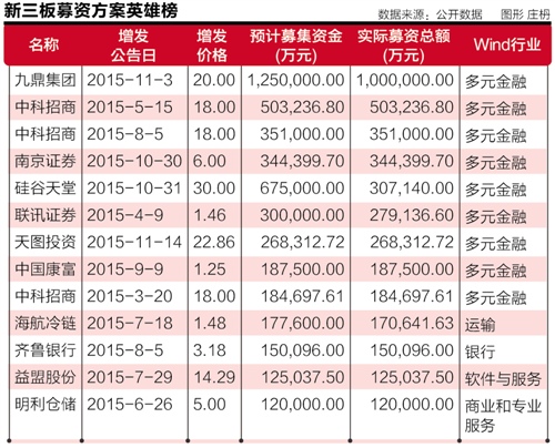 根据Wind统计,2015年共有42家金融机构实行了增发,合计募集资金392亿元,占全年融资规模的32%。据记者不完全统计,包括九鼎集团、中科招商、硅谷天堂、同创伟业、浙商创投等在内的PE机构募集资金就超过300亿元,占比超过20%。