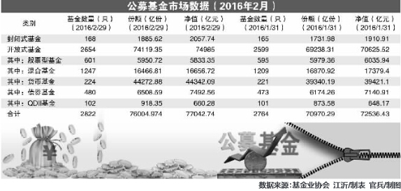 2月公募基金规模回升至7.7万亿 货基猛增4900亿元