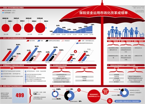 陈文辉:我认为成效主要体现在几个方面,首先是多元化配置格局基本实现。例如,股权投资已全面展开,既包括上市股权,也包括非上市股权。根据我们的统计,目前,保险资金投资股票、股权和基金的比重由2012年末的15%上升至2015年末的23%;2015年末,基础设施、信托等另类投资占比接近15%,相比2012年末的3%,增长5倍。当前我国配置领域已与国际基本一致,基本改变过去保险资金只能“做做存款,买买债券”的简单结构。
