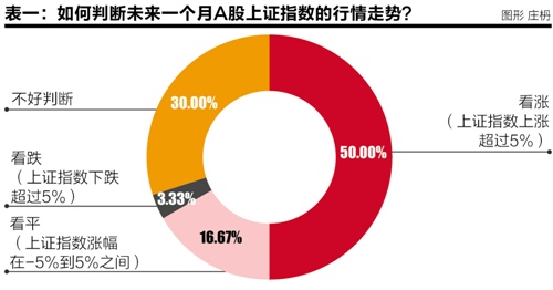 调查问卷显示,多数公募投资总监对未来一个月A股走势看涨。