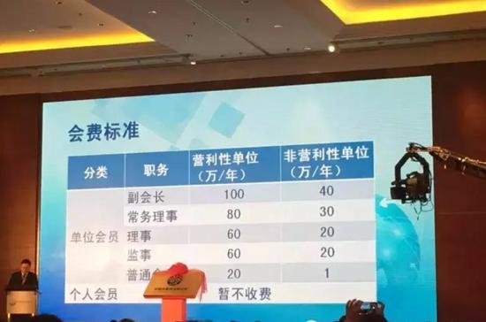 会议公布了会费标准:副会长单位100万/年,常务理事单位80万/年,理事单位60万/年,普通会员20万/年。