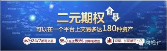被打的是这些平台,那么二元期权为何物?据商通社专家秦执介绍,二元期权,又称数字期权、固定收益期权、第一期权,是一种金融交易品种。二元期权在到期时只有两种可能结果,基于一种标的资产在规定时间内(例如未来的一小时、一天、一周等)收盘价格是低于还是高于执行价格的结果,决定是否获得收益。如果标的资产的走势满足预先确定的启动条件,二元期权交易者将获得一个固定金额的收益,反之则损失固定金额的部分投资,即固定收益和风险。根据《福布斯》杂志的分析计算,在同等规模的交易中,投资者需要赢得54.5%的交易才能盈亏相抵。