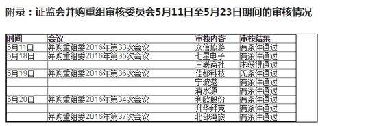 据《第一财经日报》统计,自“叫停跨界定增”传言发出的5月11日起至今,证监会并购重组委共召开了5次会议,审核了9家上市公司的发行股份购买资产;三联商社未通过、佳都科技无条件通过,7家有条件通过。