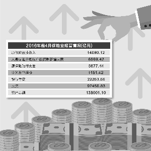 日前,保监会网站公布的今年前4月保险业经营数据显示,今年前4个月保险行业原保险保费收入14080.12亿元,同比增长40.45%。