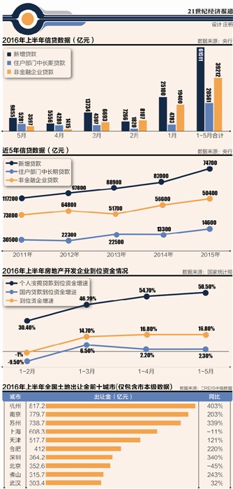 目前,前5月住户部门中长期贷款已超过2万亿。中金预计,6月居民贷款增量可能接近甚至超过8000亿元,创历史新高。依此看,上半年该项数字将接近2015年全年的3.05万亿。