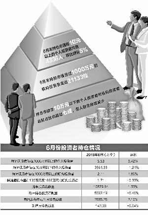 今年6月份,沪深两市日均成交量和成交金额均环比上升,期末持仓市值超过1亿元的富豪投资者随之增多。