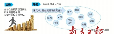 而针对民间投资遭遇的“玻璃门”“弹簧门”,文章指出,应加快出台企业投资项目核准和备案管理条例,落实企业投资自主权。降低民间投资准入门槛,落实好大幅放宽民间投资进入电力、电信、交通、油气、市政公用、养老、医疗、教育、文化、体育等领域市场准入政策。