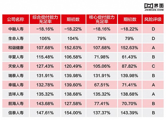 值得注意的是,生命人寿最近的风险评级为D级。根据偿二代的分类监管细则,D类公司,指偿付能力充足率不达标,或者偿付能力充足率虽然达标,但操作风险、战略风险、声誉风险和流动性风险严重的公司。